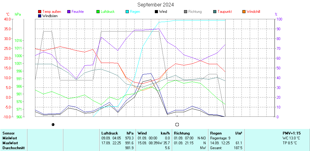 Wetterwerte Naarn im Machland (245m) / Bez. Perg / OÖ